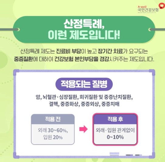 그런데 우리나라에는 산정특례 제도가 있어서, 제대로 신청만 하면 부담을 크게 줄일 수 있습니다.