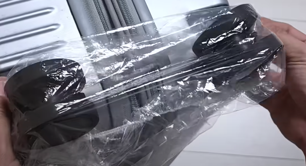 사용했던 헤어캡을 뒤집어서 캐리어 바퀴에 씌운 뒤 보관하면