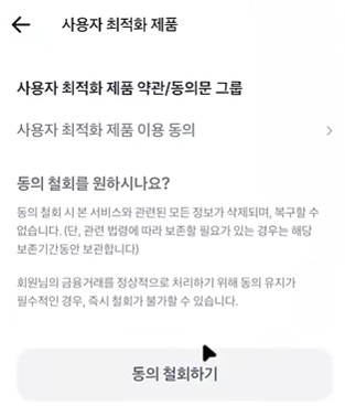 -설정에서 사용자 최적화 제품 동의 철회 필수